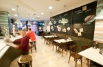 – La zona de comedor también seguirá la idea de la cafetería en tonos tostados y papel de madera.