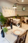– La zona de barra y cafetería que incorpora una ventana pasaplatos para facilitar el tránsito con el comedor y un botellero para facilitar el almacenamiento y organizar mejor los espacios. La cafetería tiene 4 mesas y se le dará un toque más artesanal y acogedor incorporando el papel que imita madera con la pared pintada de pizarra y los tonos tostados.