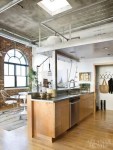 Todos hemos soñado alguna vez con esos espacios abiertos de estética industrial que hemos visto en tantas películas. Como todo en la vida tienen sus cosas buenas y malas pero es que os voy a enseñar no tiene nada malo !!!. luz a raudales, una decoracion ecléctica, paredes de ladrillo, ventanas con arcos de medio punto, techos altisimos de hormigon y hasta un precioso perro. Alguien da más ?