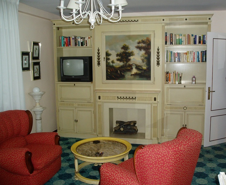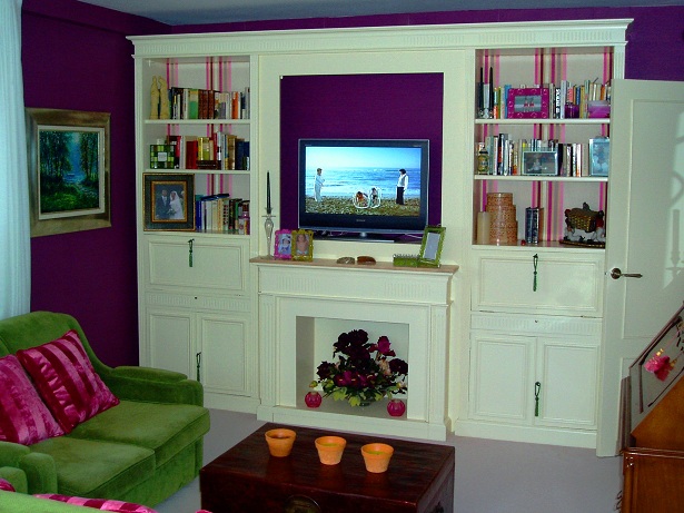se laco la libreria existente, se tapizo tras las baldas y se abrio el cuerpo central para poder colocar la tv.