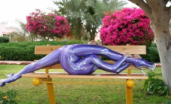 Parece una escultura, pero es una mujer de verdad! y yo que no me llego a la punta de los pies, unos tanto…!
